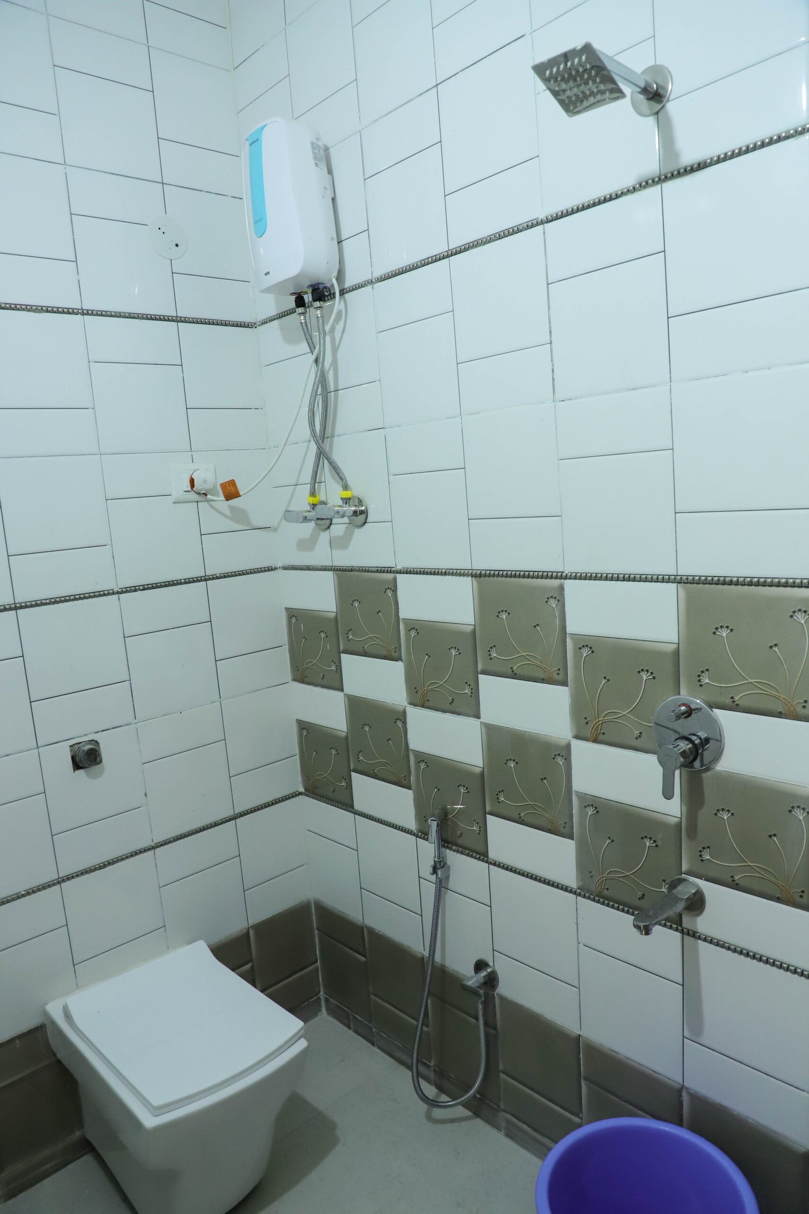 Modern attached bathroom with essential toiletries